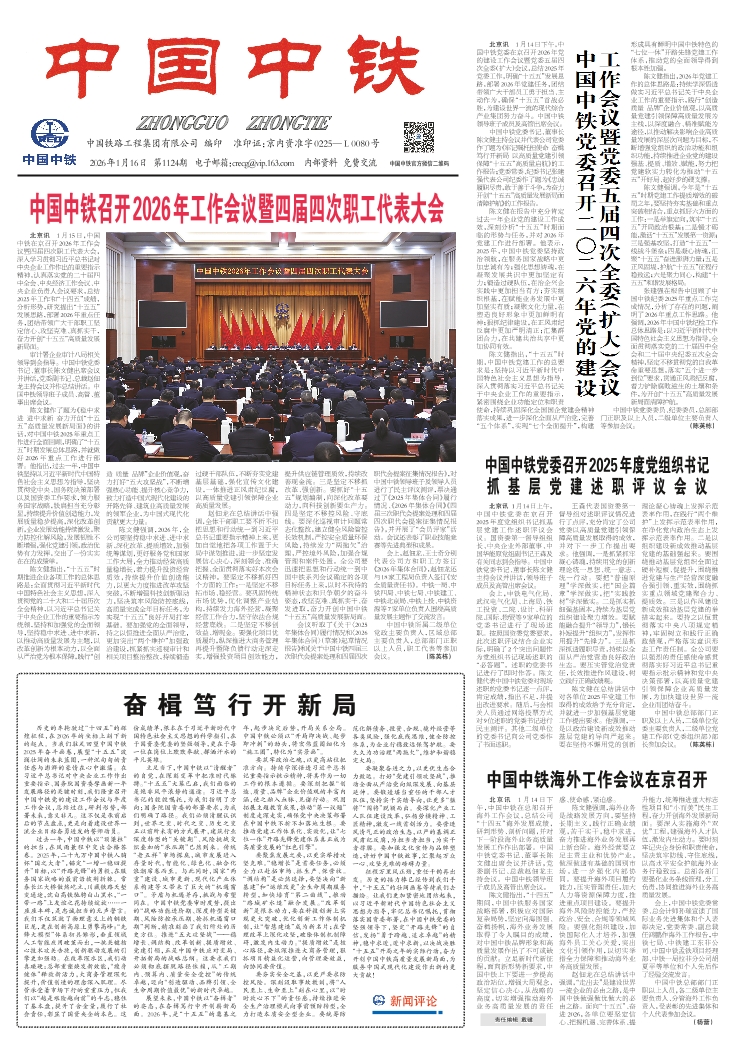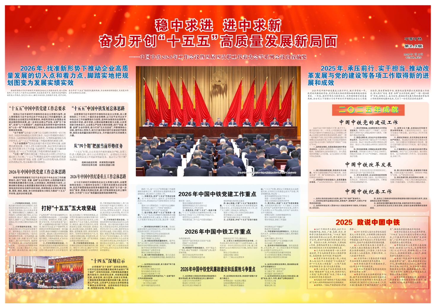 稳中求进进中求新奋力开创“十五五”高质量发展新局面——中国中铁2026年工作会议暨四届四次职工代表大会等系列会议内容摘要