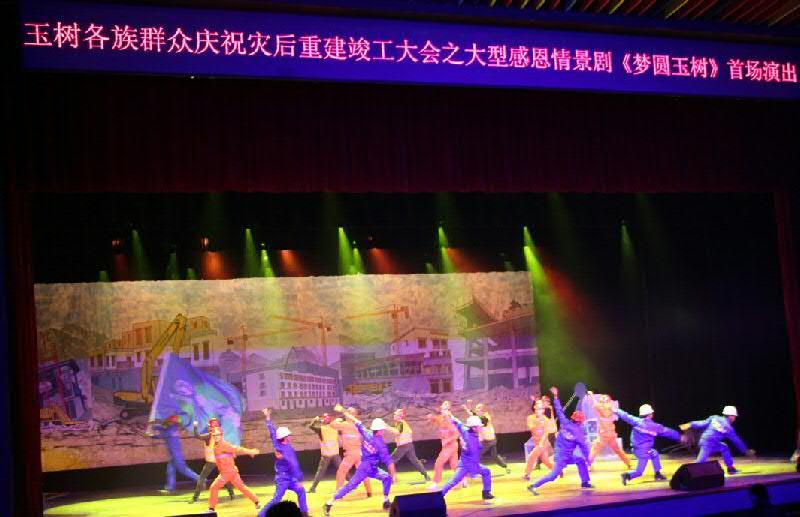 本报青海玉树讯11月3日晚,在玉树三年重建工作胜利完成,当地群众欢庆喜迁新居之际,由中共玉树州委组织的玉树各族群众庆祝三年重建工作完成大型情景剧《梦圆玉树》在玉树州康巴艺术中心举行首场演出,中国中铁员工形象作为援建央企优秀代表贯穿整个演出。