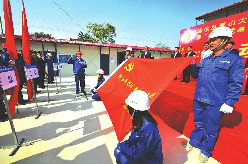 11月4日,中铁上海一公司党委与中共当涂县委在当涂青山大桥项目工地现场隆重举行工程项目联合党委揭牌暨“携手擎党旗皖江树丰碑”党建主题活动启动仪式,搭建企地共建平台,切实深化区域党建工作,营造良好外部施工环境。 姚庆国 摄