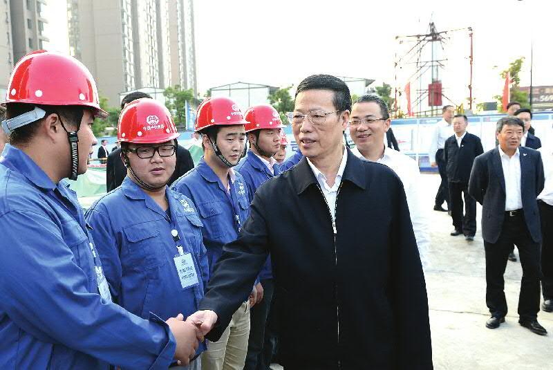 本报杭州讯 11月1日15时50分,中共中央政治局常委、国务院副总理张高丽一行,在浙江省、杭州市及杭州地铁集团公司领导陪同下莅临中铁四局城市轨道交通分公司杭州地铁4号线项目部工地考察。