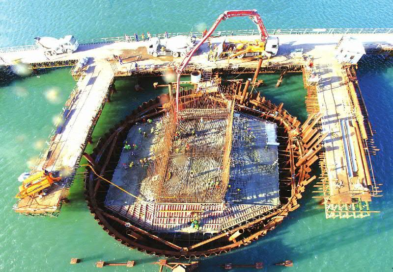 当地时间11月4日,由中铁大桥局施工的东非最大斜拉桥坦桑尼亚基甘博尼大桥首个深水主墩承台——A7号主墩承台混凝土浇筑顺利完成,标志着项目部攻克了海洋环境下超深淤泥地质深水基础施工难点。A7主墩为全桥控制性项目,承台高4米,钢筋总量390吨,混凝土方量1760立方米。承台浇筑前,坦桑尼亚国家工程师注册委员会组织人员进行了观摩学习。李海宏 曾海平 摄影报道