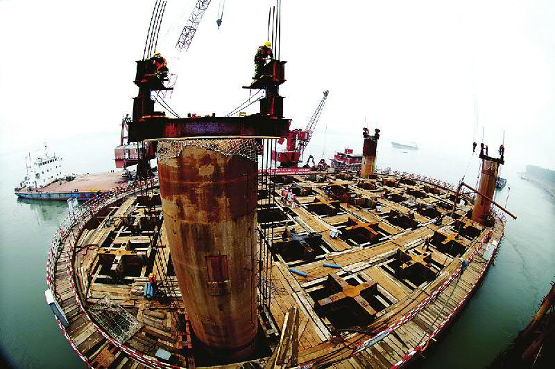 11月7日凌晨6时,由中铁大桥局二公司施工的蒙西华中铁路湖北公安长江大桥,一个长68.2米、宽40米,高18米,厚2米,重达5547.6吨的椭圆形双壁钢箱围堰,在3号主墩精确定位下放到设计标高,顺利实现吊装就位。新建蒙西至华中铁路运煤大通道公铁两用特大桥,为国内首条跨长江重载铁路桥。 崔永兴 胡齐齐 摄影报道