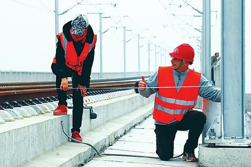 目前,随着中铁上海局大西指挥部承建的大西客专晋陕黄河特大桥工程基本完工,四电工程进入尾期。项目部通过自检、互检、交接检三检制,确保了工程质量。图为11月9日,国外监理在质检时夸赞工程质量好。 张华先 摄