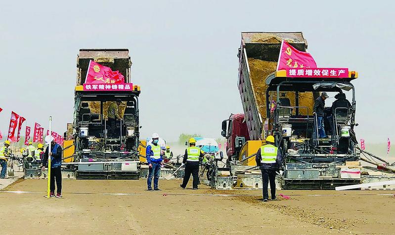 5月3日, 中国中铁双洮高速公路项目总经理部第三工区项目路面水稳底基层试验段铺设成功。 陈小军 秦潇涵 摄影报道