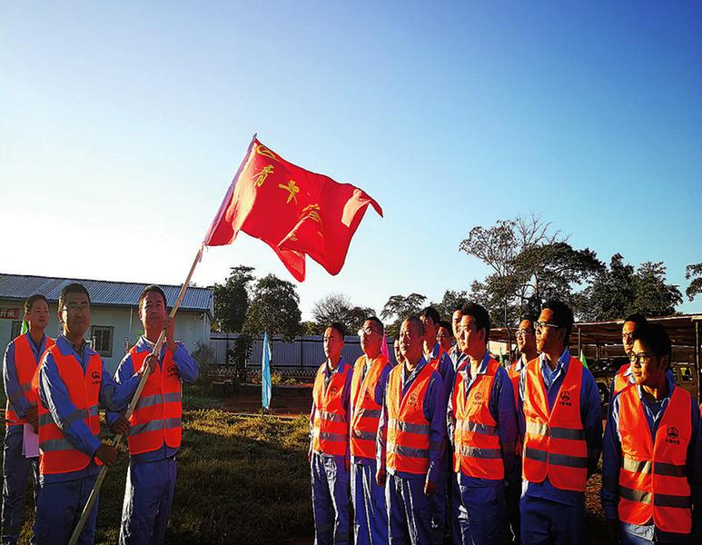 5月4日, 中铁七局海外公司坦桑尼亚地区西南片区举行青年突击队授旗仪式, 激发青年员工的工作热情, 承担各项急难险重施工任务, 保证在旱季完成年度施工任务。 林丹 樊建伟 摄影报道