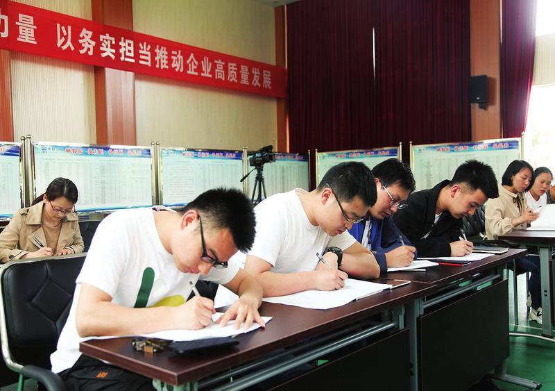 5 月 17 日, 在中铁三局六公司党委组织开展的 “不忘初心,牢记使命” 专题党课暨党员 “应知应会” 答题活动中, 60 余名党员、积极分子正在认真进行党员 “应知应会” 答题, 检验并强化对党性、 党史、 党章以及习近平新时代中国特色社会主义思想和十九大精神的学习和理解。 晓冬 张洁 摄影报道