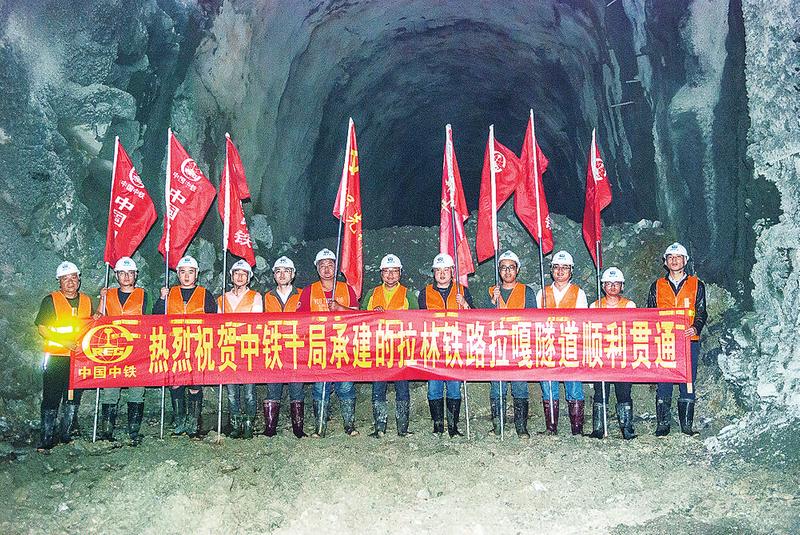 7月16日,中铁十局三建公司承建的拉林铁路拉嘎隧道贯通。该隧全长8537米, 其中车站隧道 (甲格车站深入隧道)长208米、 单线隧道长8329米。隧道最大埋深约736米, 2015年7月开工。 高二松 王啸 摄影报道