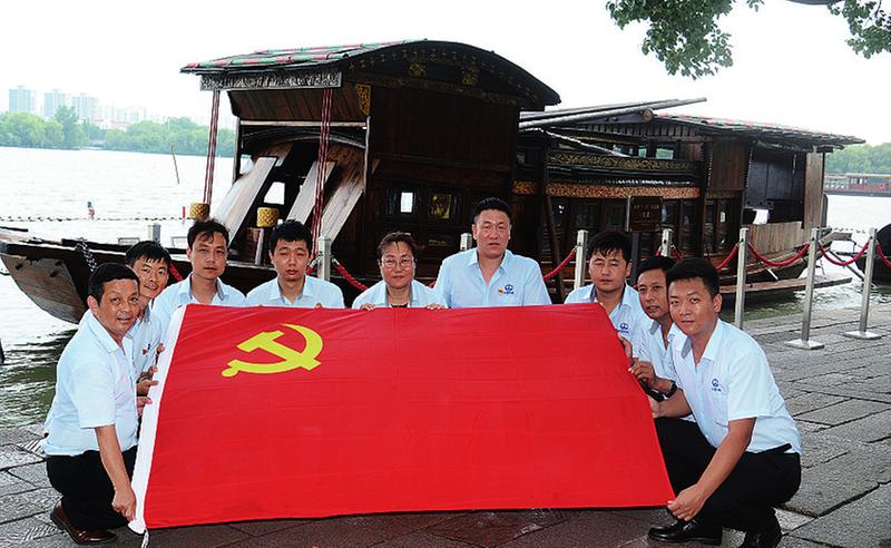 7月21日, 中铁九局六公司苏州地铁项目党支部组织党员、 入党积极分子, 到浙江嘉兴南湖党的一大召开旧址开展主题党日活动, 教育全体党员以 “红船精神” 为指引, 不忘初心, 强化使命担当, 忠诚履职尽责。 李卫东 摄