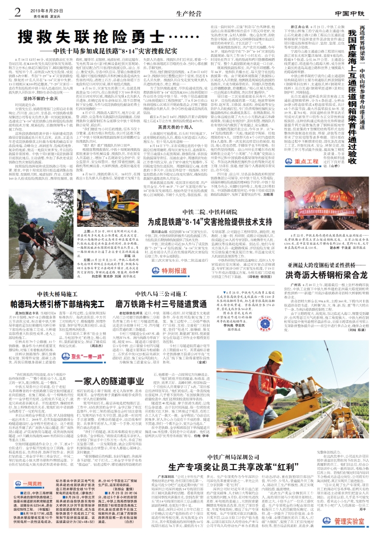 为成昆铁路“8·14”灾害抢险提供技术支持