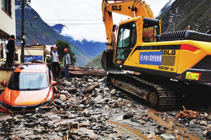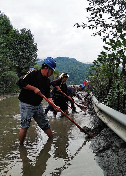 8月20日, 四川省阿坝州汶川县、理县境内多处发生山体滑坡、 泥石流灾害。中铁六局路桥公司汶马项目部在架梁作业队驻地也遭受洪水袭击的同时, 兵分两路,一路解救被洪水围困的架梁作业队员工, 另一路协助地方打通了去往重灾区的救援通道。 宋瑶 摄