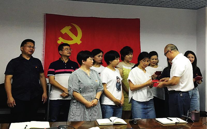 图③8月23日, 中铁二局地产集团收尾中心党委组织开展 “学党章修党性” 主题党日活动, 引导党员以党规为准绳, 不断锤炼党性。图为会上向党员发放 《中国共产党章程》 。 罗永霞 杨爽 摄影报道