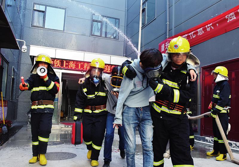 8 月 23日, 中铁上海局 北 京 地 铁12 号 线 项 目部开展了微型消 防 站 实 地“ 大练 兵 ” 活动。活动邀请专业消防队员对灭火器材的使用、 火灾扑救注意事项及火灾初期的处置、 火场逃生等消防安全常识进行讲解,并 对 项 目 部20 多 名 义 务消防员进行实操训练。图为项目部义务消防员开展消防演练。 张刚 赵晶晶 摄影报道