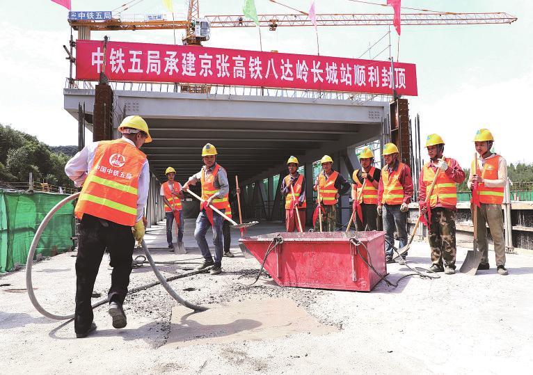 8月23日, 随着最后一罐混凝土浇筑完毕, 由中铁五局承建的京张高铁八达岭长城站主体结构封顶。至此, 京张高铁全线站房主体结构全部完工。