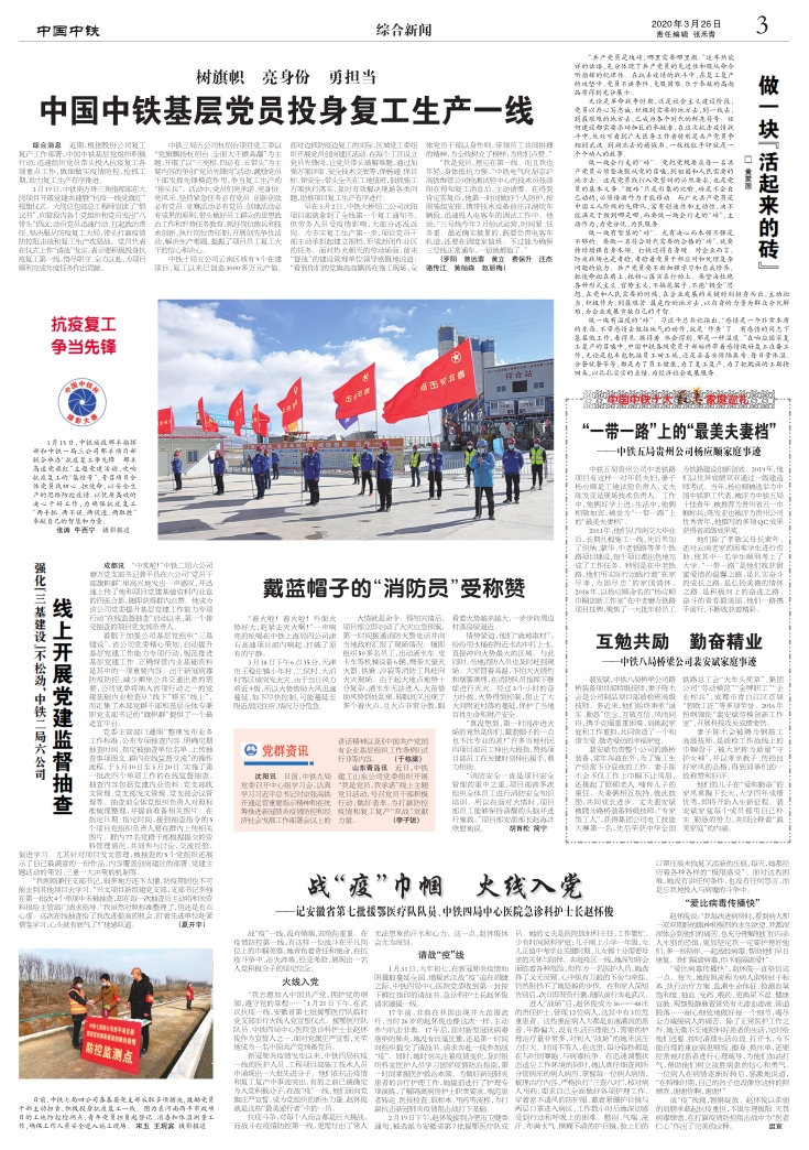 中国中铁基层党员投身复工生产一线