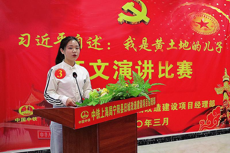 3月19日, 中铁上海局三公司宁阳县旧城改造建设项目部举办《习近平自日,中铁上海局三公司宁阳县旧城改造建设项目部举办 《习近平自述: 我是黄土地的儿子》 征文演讲比赛。 卜明慧 摄