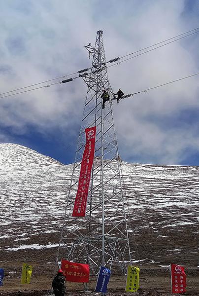 五一期间, 中铁武汉电气化局一公司电力变电分公司国网西藏项目部掀起 “决战塔尔玛” 大干高潮。当前施工的申扎塔尔玛35千伏输变电工程, 位于4850米海拔的雪域高原, 为国家 “三区三州” 深度扶贫项目。 杨郝城 摄