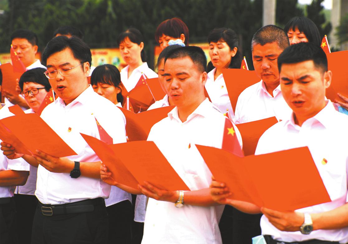 ①5月8日,中铁五局路桥公司本部组织开展“学党史国史明初心使命”主题党日活动,进一步加强“四史”学习教育,营造知史爱党、知史爱国良好氛围,提升党员党性修养。图为现场诵读《我的祖国》爱国诗词。