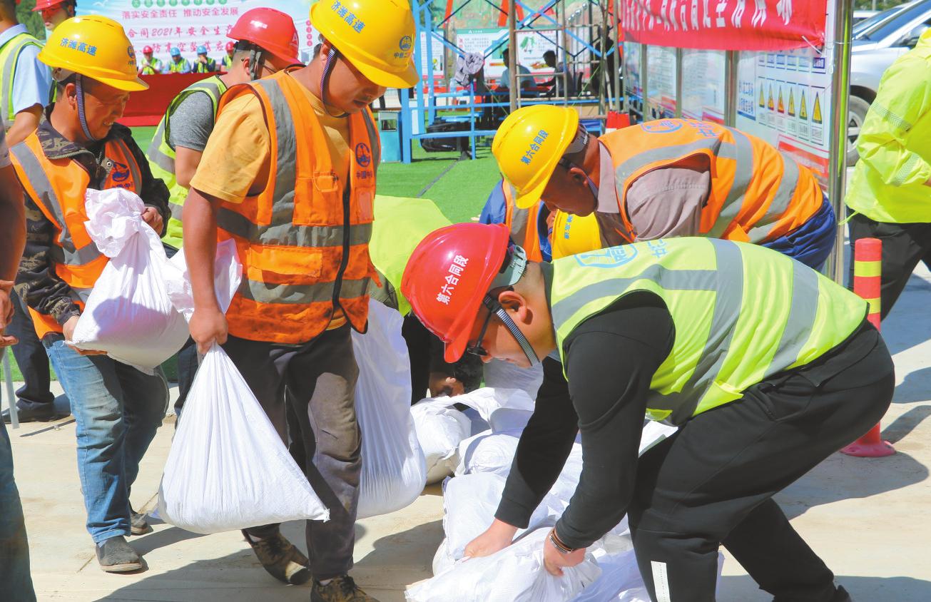 ①6月4日,中铁二局济潍高速六标项目部联合山东路桥济潍六标项目部在施工现场开展防汛、防高空坠落联合应急演练。