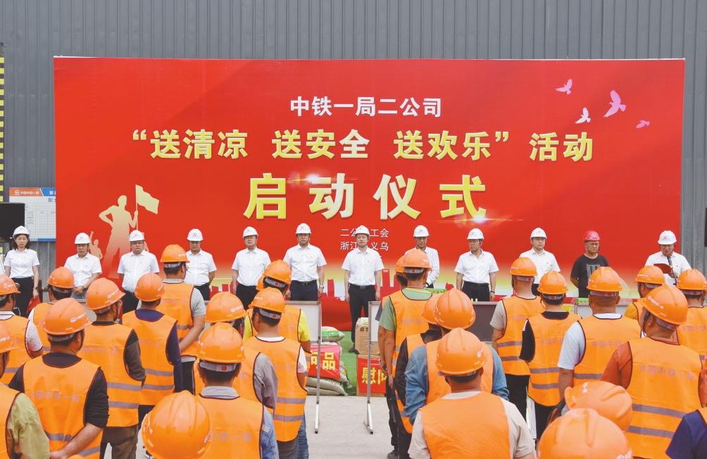 ①近日,中铁一局二公司“送清凉送安全送欢乐”活动启动仪式在金甬铁路项目一工区1号拌和站举行,项目部员工及农民工200余人参加。