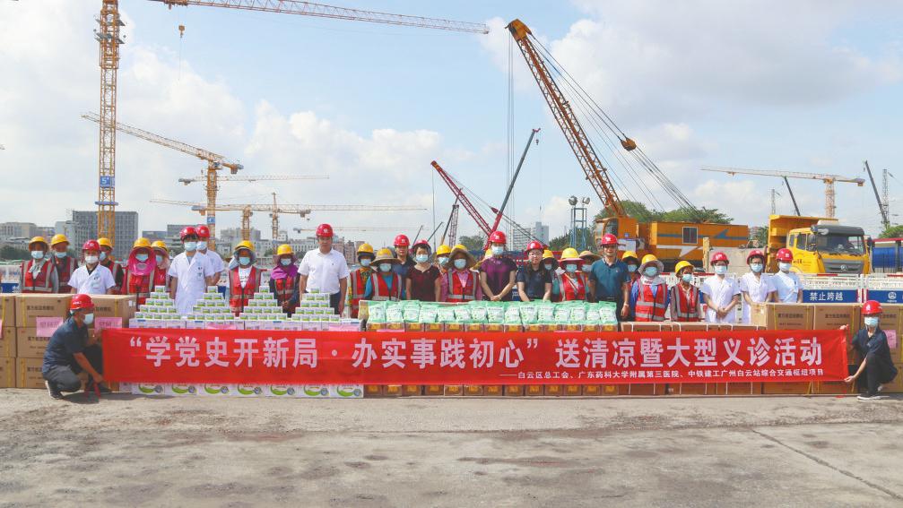 ⑤近日,中铁建工广东公司举办“学党史开新局办实事践初心”送清凉暨义诊活动,为参建人员发放慰问品,并邀请专业医师为工人们义诊。