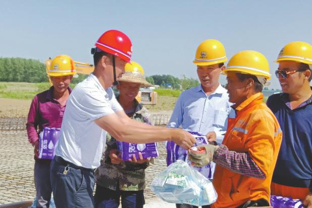 ②6月5日,中铁四局七分公司淮南市政项目部在施工现场将防暑降温慰问送到农民工手中,保障一线作业人员身体健康,施工顺利推进。