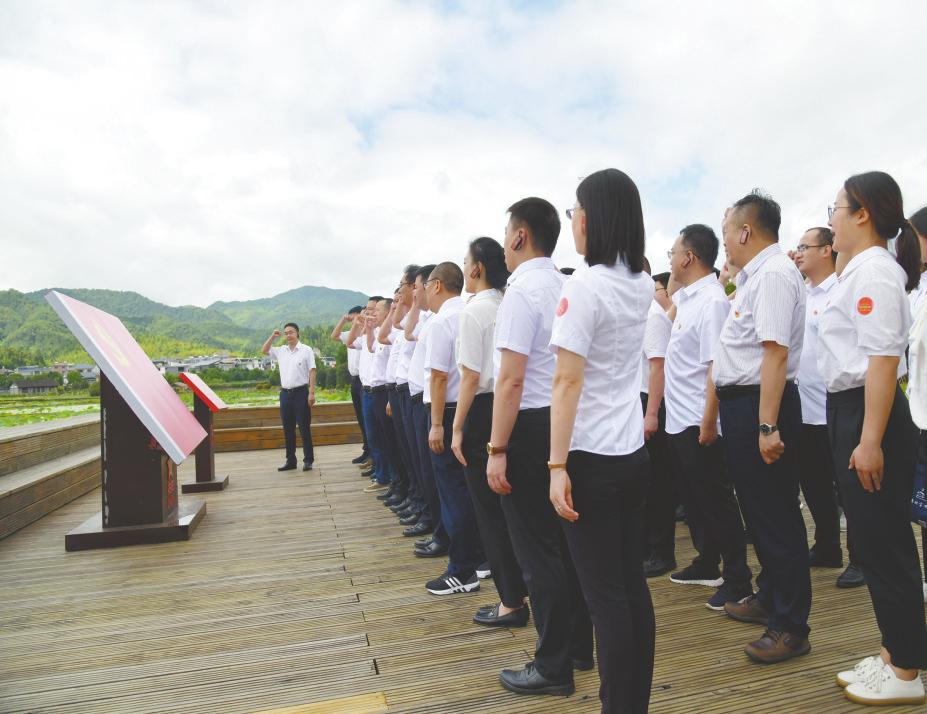 ①6月9日,中铁二局电务公司组织60余名党员干部在福建省上杭县古田镇开展红色教育培训,传承红色基因。图为大家在古田会议旧址旁重温入党誓词。