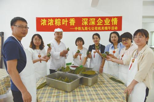 ⑥6月10日,中铁九局七公司、四公司开展了以“浓浓粽叶香深深企业情”为主题的端午节系列活动。包粽子、拔河比赛,营造了欢快喜庆的节日氛围。