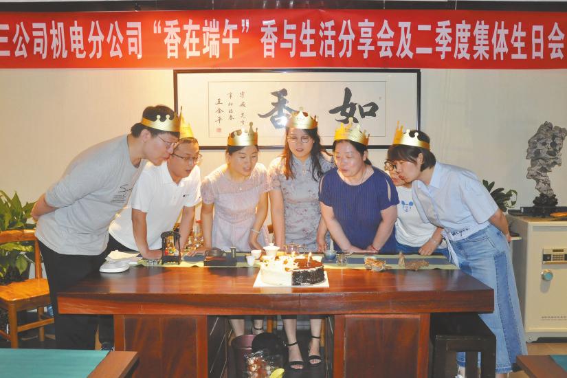 ⑨6月11日,中铁电气化局三公司机电分公司组织员工举办“香在端午”香与生活分享会,纪念伟大的爱国主义诗人屈原,为大家普及传统“熏香”文化,并举办了二季度集体生日会。