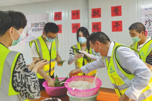 ①6月10日,中铁二局地产盈庭公司开展了“弘扬传统文化,共颂爱国情怀”主题团建活动。全体员工齐聚家庭农场,开展包粽子、制作香囊和端午知识竞赛等活动。