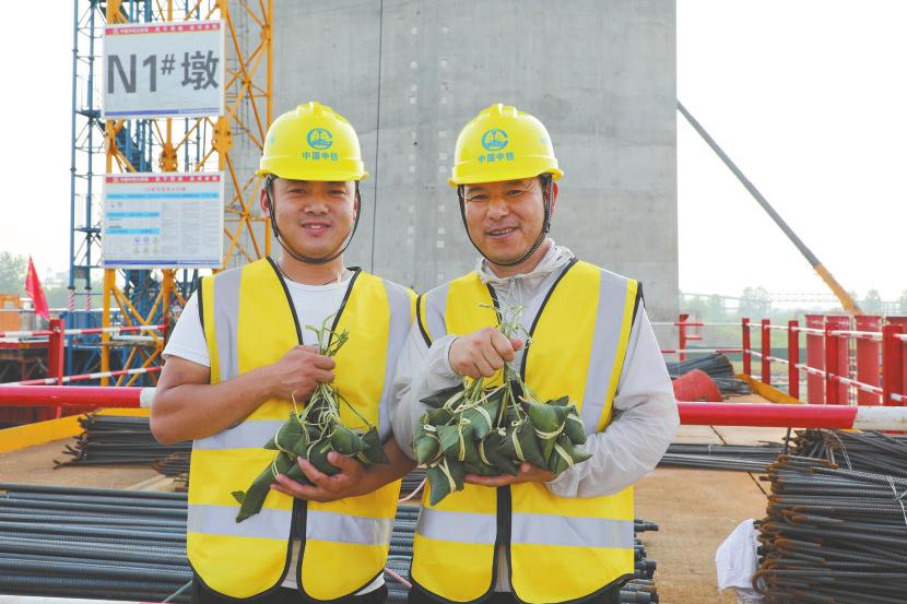 ⑧6月11日,中铁大桥局南京仙新路过江通道项目部联合南京信息工程大学共建单位举行了“粽叶飘香迎端午”主题活动,并把大家亲手制作的粽子送到作业工人手中。