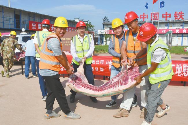 ②6月10日,中铁三局天津公司开展欢庆端午节活动。以包粽子、编五彩绳等方式祈福平安,传递爱心,传承端午文化。刘玮摄③6月14日,中铁四局市政公司衢州市高铁新城地下综合管廊项目部为1000余名一线工人送去了2000斤猪肉、1000余枚粽子。