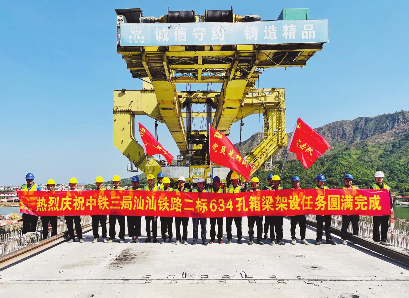 10月26日,中铁三局承建的汕汕铁路项目二标段箱梁架设完成。汕汕铁路位于粤东沿海港口城市经济带的中心轴线上,东起广梅汕铁路汕头站,西至厦深铁路汕尾站,正线全长162.4公里,二标段共长31.6公里,包含桥梁7座,共有箱梁634孔。