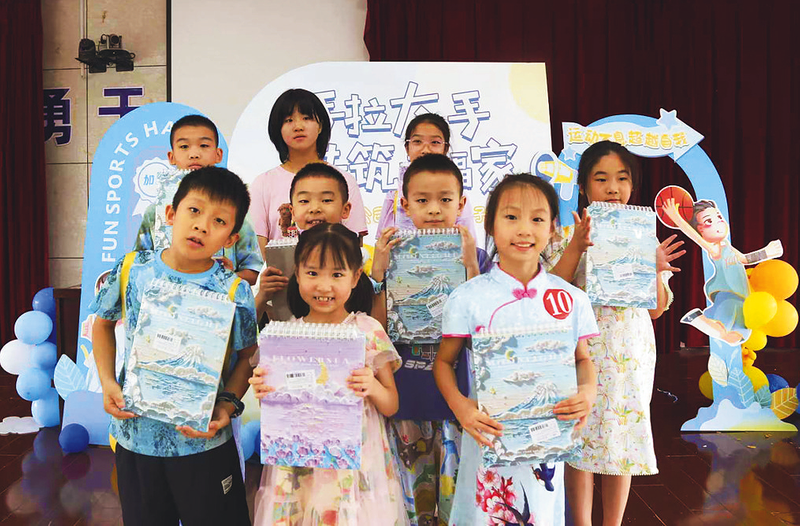 8月12日上午,中铁大桥局六公司组织开展“大手拉小手 共筑幸福家”暑期亲子活动,武汉地区员工子女欢聚一堂。活动设置了乒乓球接力赛、双人跳绳、拼桥模、投壶等亲子互动游戏,让员工及其子女在游戏中增进彼此感情。图为孩子们手持小礼物合影。