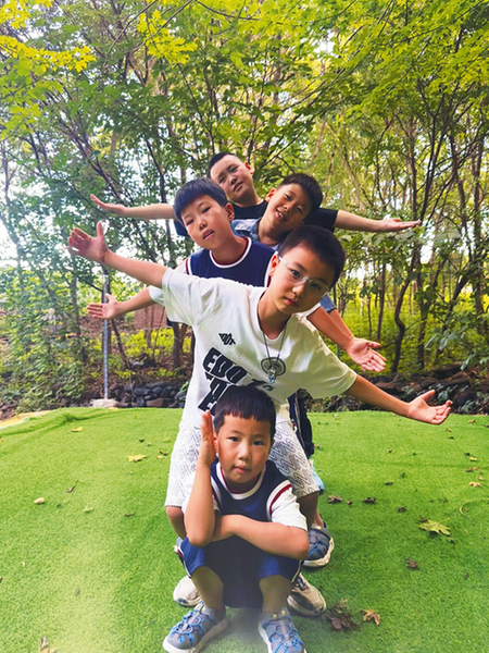 8月10日,中铁北京局本桓高速十工区项目部组织员工子女到桓仁县枫林小院开展“爱沐暖阳 快乐成长”亲子活动。通过做游戏、赏风景等环节加深亲子间的情感交流。图为孩子们的创意合影。