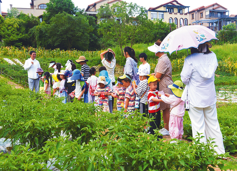 8月7日,中铁置业文旅贵州公司组织“置业小学堂”的孩子们走进中铁国际生态城幸福农法生态示范园开展研学游活动。通过趣味问答、亲手采摘果蔬,让孩子们了解植物生长规律,学习农耕种植小知识。 王世海 摄