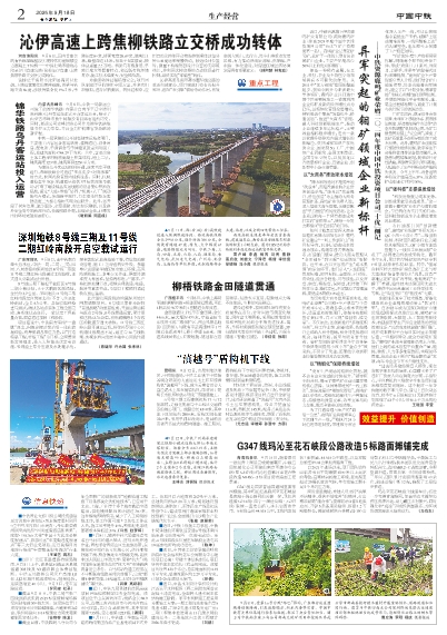 ■9月8日,随着中铁六局建设者完成白马河站场道岔插入、信号系统开通作业,西起邢台西部山区生态旅游带,东接东部平原红色文化核心区,依托邢和铁路主线、整合德龙专用铁路支线,连接中国人民抗日军政大学(简称“抗大”)陈列馆所在地浆水站的“抗大号”市域铁路具备运营条件。白马河站改造工程需在不中断既有线路运营的前提下,完成“新增4条到发线、14组道岔、5.575公里线路铺设”等任务。 (吕康 高跃新)