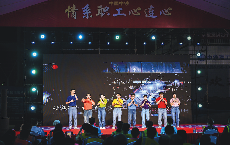 9月13日,中铁建工“送文化、送健康、送技能、送关爱”暨“小候鸟”关爱保护宣讲慰问活动走进深圳机场东站施工现场,活动包含文艺汇演、“送清凉”、健康义诊等内容,旨在让近200名基层一线建设者感受“家”的温暖。图为文艺汇演现场。