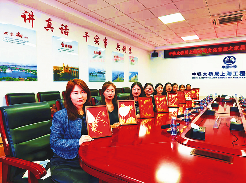 10月31日,中铁大桥局上海公司纪委开展“文化育廉之家属助廉、员工践廉”主题活动。活动包含话廉风、读廉书、送家书、寄廉语、守廉心等环节,旨在进一步凝聚家庭助廉力量,推动廉洁文化进家庭。图为员工家属展示创作的蕴含廉洁意境的金箔画。