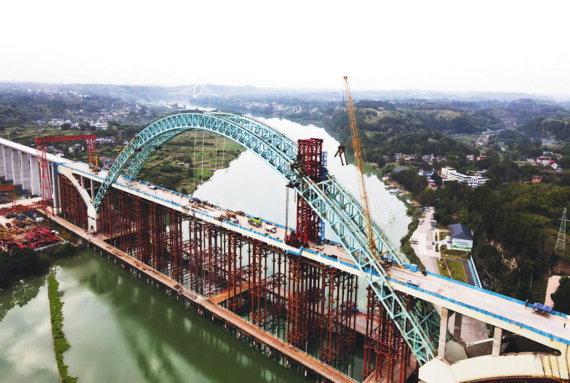 11月10日,中铁二院勘察设计、中铁大桥局承建的成渝中线高铁控制性工程简阳沱江特大桥主梁合龙。该桥全长1252米,主桥为主跨320米中承式钢管混凝土拱桥,是世界最大跨度无推力组合拱桥。