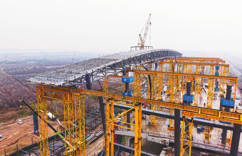 津潍高铁东营南站项目首榀钢屋架拼装滑移作业完成