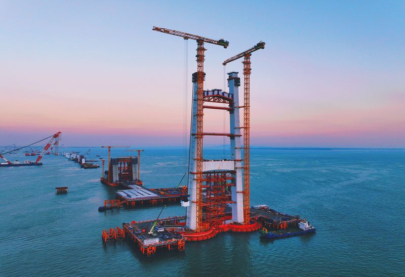 厦金大桥刘五店航道桥东、西主塔全部封顶