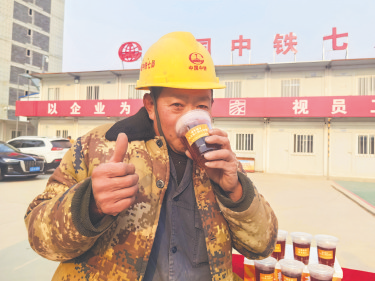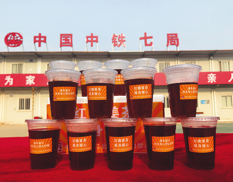 ②近日,中铁七局二公司工会启动冬季送温暖特别行动,在项目一线正式开启“行走的饮品店”暖心营业,为严寒中坚守岗位的建设者们现场派送精心熬制的“红糖姜茶”。