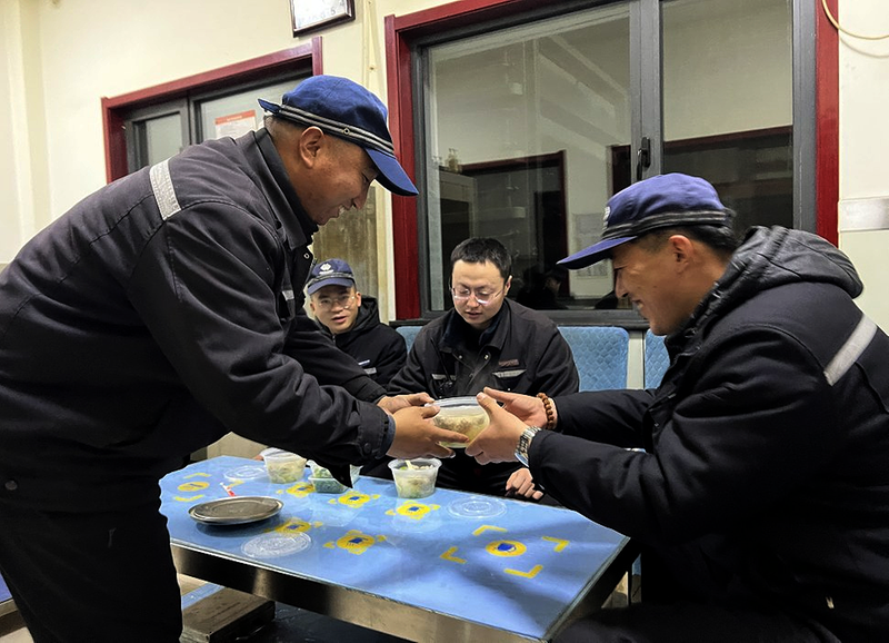 ④近日,中铁三局运输公司第二运输段黄骅港车辆运维中心组织开展“冬送温暖”专项活动,将热气腾腾的暖心丸子汤送至坚守岗位的员工手中,以贴心关怀凝聚能源保供的强大合力。