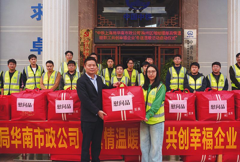 ⑦12月17日,中铁上海局华南市政建设公司在广东梅州区域项目部启动冬送温暖活动,为一线员工送上棉被等慰问品,传递企业的深切关怀。