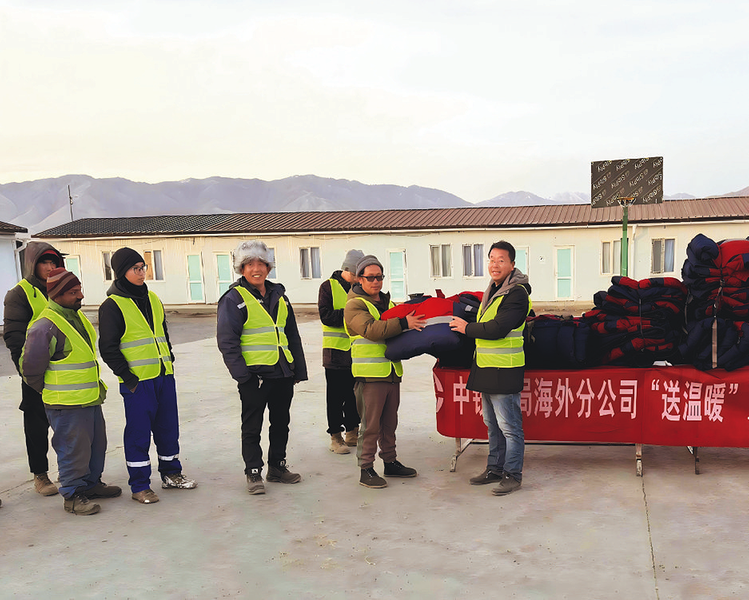 ③近日,中铁五局吉尔吉斯斯坦分公司以“丝路连心·冬送温暖”为主题,为坚守高寒地区中外员工配发防寒物资与新鲜食材,保障冬季施工安全,凝聚团队合力。