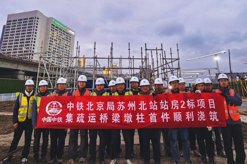 ③1月1日,中铁北京局北京公司苏州北站站房2标项目部完成集疏运桥梁墩柱首件浇筑,达到“首件示范、样板引路”目标。