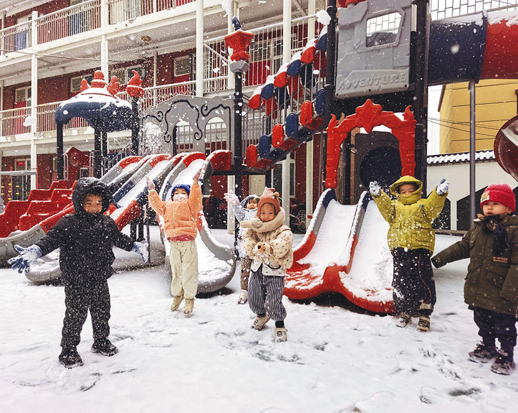 近日,中铁六局信达置业公司太原幼儿园披上银装,在老师的引导下,孩子们玩雪并感知自然,变寒冷雪日为生动课堂。