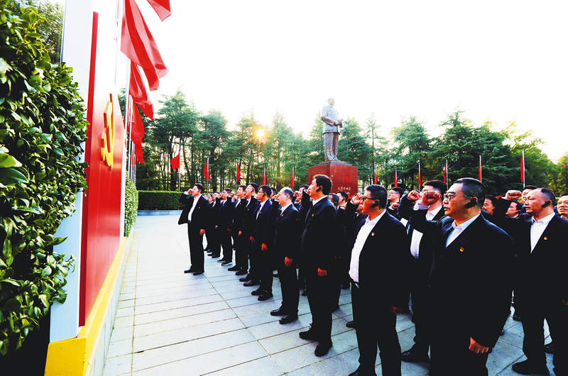 2月8日,中铁六局路桥公司党委组织党员干部前往韶山红色教育基地,开展“新春砺初心 先锋勇前行”主题党日活动。活动聚焦“强党性、明责任、勇担当”主题,通过实地参观与现场教学相结合的形式,引导全体党员干部重温革命历史,感悟初心使命,汲取奋进力量,以昂扬姿态开启2026年新征程。图为重温入党誓词。