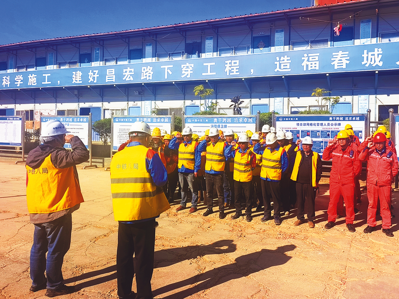 中铁八局昆明市昌宏路下穿项目部开展班前安全讲话