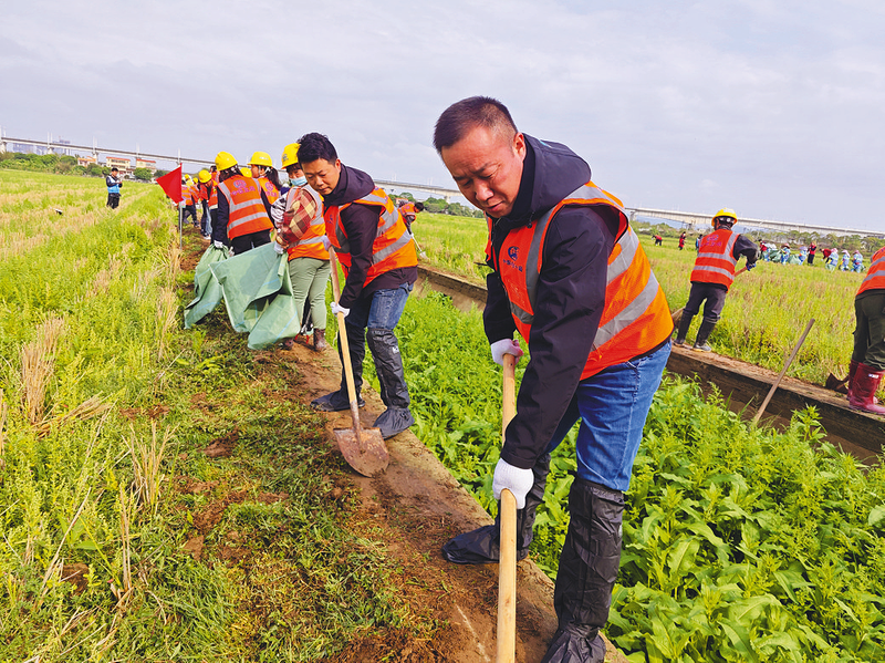 3月5日,中铁十局深江铁路项目党支部联合广州市南沙区河长办、水务局开展水环境清淤治理活动,对珠江街农业灌溉渠进行清淤疏浚,展现了央企担当。